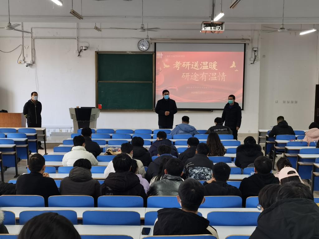 12月14日上午,皇冠集团网站开展为考研学生送温暖活动,学院领导班子成员分别来到自己联系的2019级各班级,看望、慰问考研学生并送去祝福。