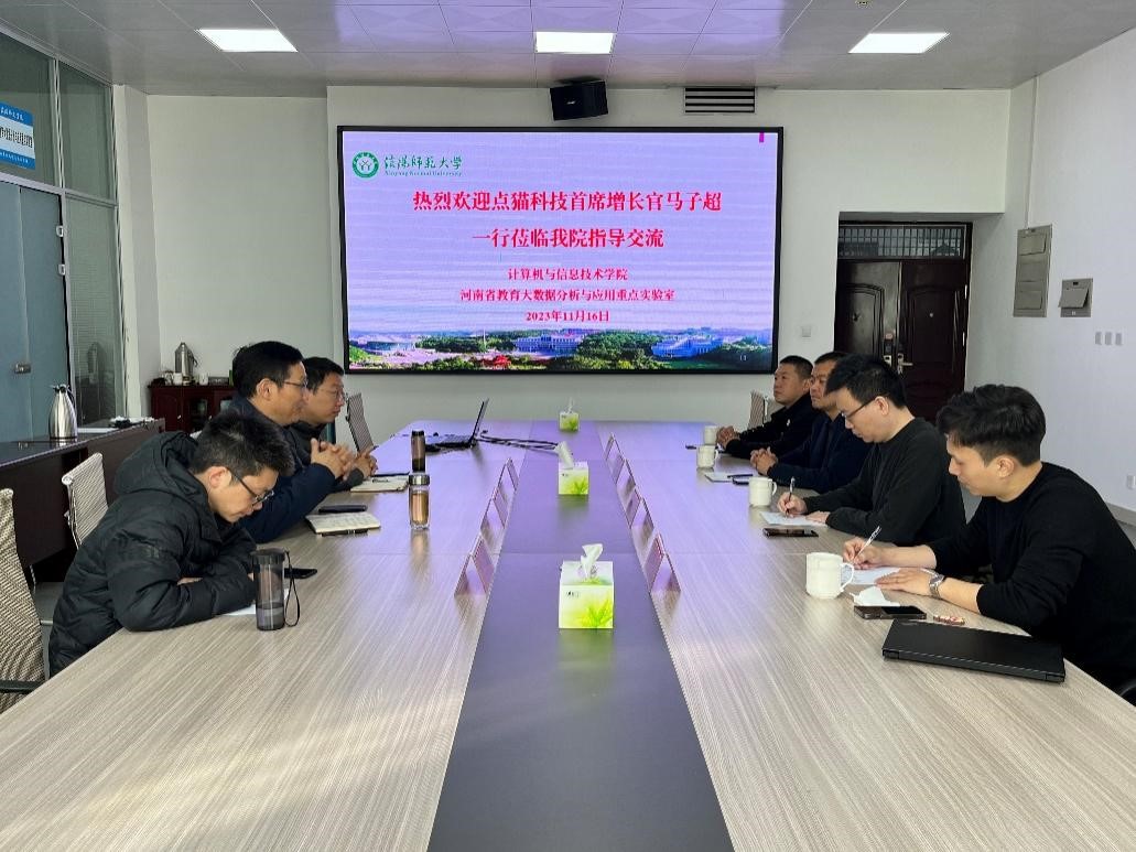 首先由点猫科技公司市场部林金兴与点猫科技公立教育河南区域经理蔺磊汇报了皇冠集团网站高等院校协同点猫科技进行产学研合作协同育人的发展规划方案,从产学研融合、协同育人、共同发展的核心目标出发,分享了公司在教育编程领域的先进理念和成功经验。首席增长官马子超就产学研深度合作、学生实习就业、校企科研项目合作等方面与参会人员进行了深入交流,并就未来可能的合作方式进行了探讨。