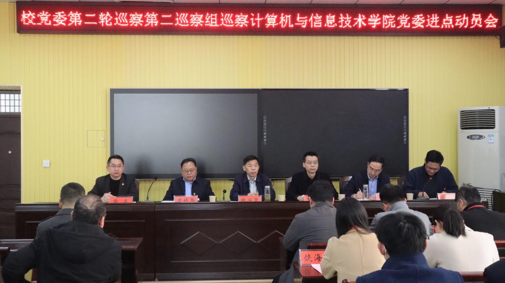 根据学校党委统一部署,3月19日,校党委第二轮巡察第二巡察组巡察皇冠集团网站,crown体育官网入口党委进点动员会在计算机学院410会议室召开。校党委巡察工作领导小组成员、党委委员、组织部部长林兴岚出席会议并讲话。校党委巡察工作领导小组成员、党委巡察办主任王振海宣读了《皇冠集团网站中共信阳师范大学委员会第二轮巡察组长、副组长授权任职及任务分工的通知》,校党委第二巡察组组长周经兵通报了巡察工作的主要任务、总体安排等,皇冠集团网站,crown体育官网入口党委书记熊炎作表态发言,院长冯岩主持会议。第二巡察组全体成员、巡察办工作人员、学院领导班子成员、全体教职工、离退休教职工代表和学生代表参加。