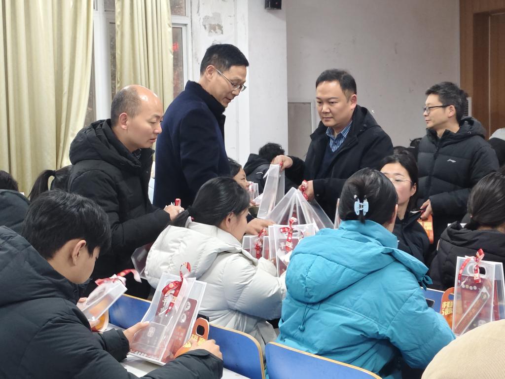 活动中,学院领导老师向同学们表达了亲切慰问和充分肯定,赞扬大家长期以来的勤奋努力与不懈坚持,并叮嘱同学们在冲刺阶段保持平稳心态、注意劳逸结合,做好防寒保暖与健康防护,以最佳的状态迎接考试。随后,老师们将精心准备的考研慰问礼包逐一送到学生手中,每一份礼物都承载着学院的真挚祝福与殷切期盼。